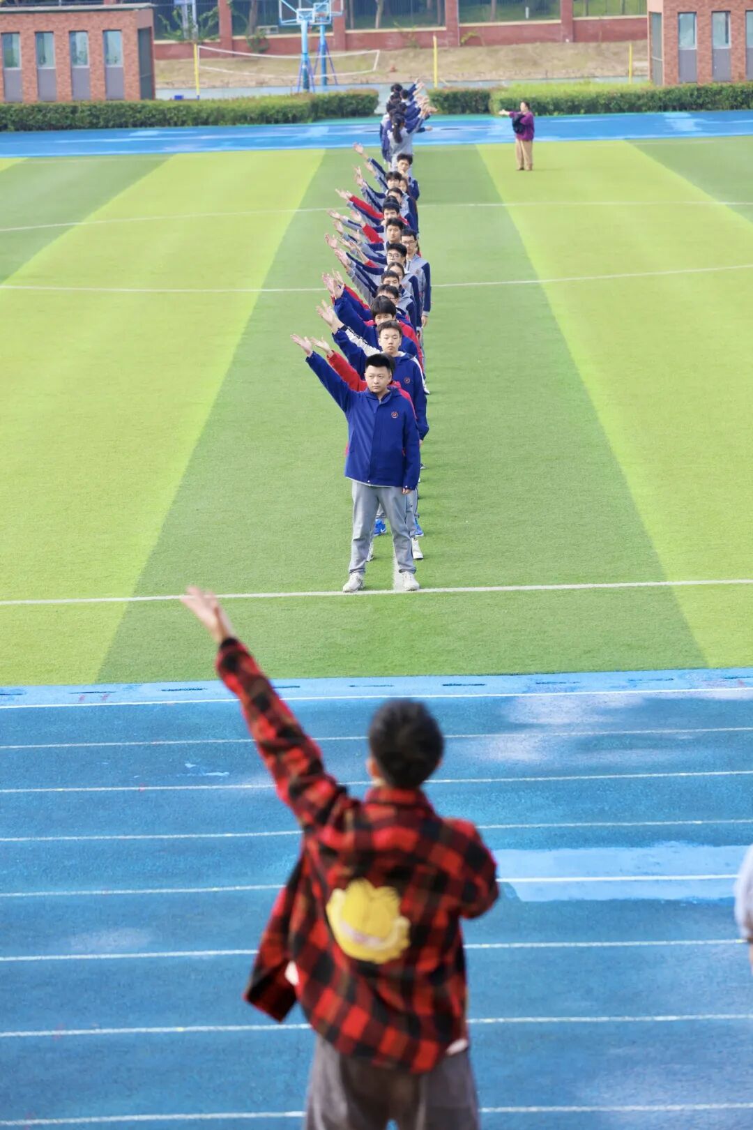 精彩绽放的背后,是年级自治管理模式下高效协作与严格自律的集中体现。自接到任务起,专项工作组迅速成立,由校级领导亲自统筹,年级组与艺体组教师联合策划,班主任全程跟进陪伴。排练期间,同学们始终保持昂扬斗志,克服排练中的各种困难,平衡学业与排练。他们以“格物致知”的钻研精神,对每个动作、每次走位反复打磨,将“融通事理,经世济用”的理念融入实践,在挑战中锤炼了坚韧的意志和深厚的集体荣誉感。