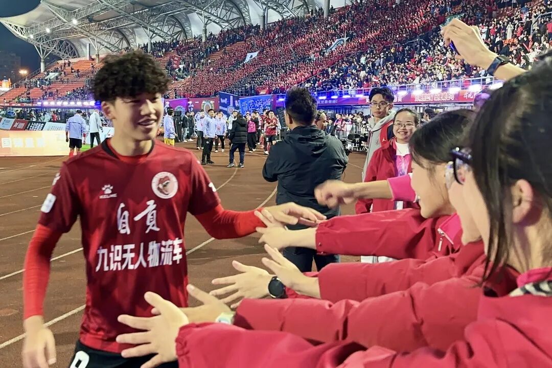 这份激情似乎也感染了自贡队。在落后两球的不利局面下,队员们没有犹豫,更没有放弃,最终连进四球完成逆转。当终场哨响,4:2的比分定格时,我忽然明白:无论是球场上拼搏的球员,还是场上全情投入演出的孩子们,都在用行动诠释着同一种精神——面对困境,不再犹豫;坚持到底,永不放弃。